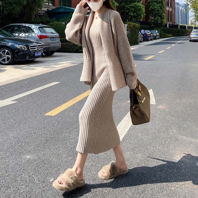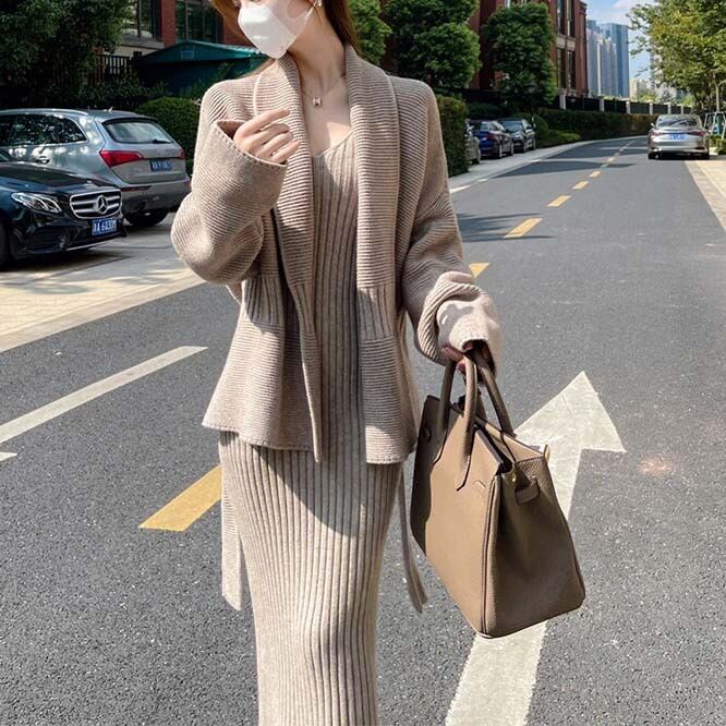 韓国風レディース服 長袖 セットアップ ワンピース コート
