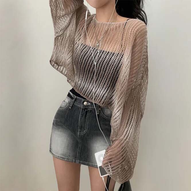 **韓国風レディース服 透かし編み 長袖 トップス**