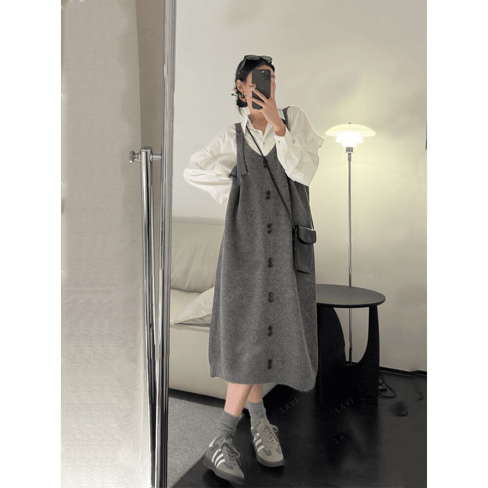 サロペットワンピース ロング 長袖