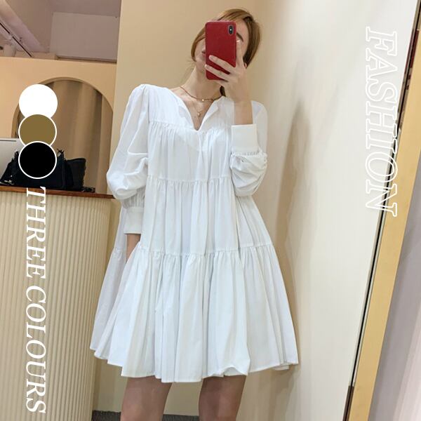 こちらのアイテムは、トレンド感あふれる韓国風のVネックショートワンピースです。柔らかな生地が肌に優しく、シーズンを問わず快適に着用できる一着です。パフスリーブデザインが女性らしさを引き立て、カジュアルから特別な日まで幅広いシーンで活躍します。ぜひ、このワンピースをクローゼットに加えて、様々なコーディネートを楽しんでみてください!