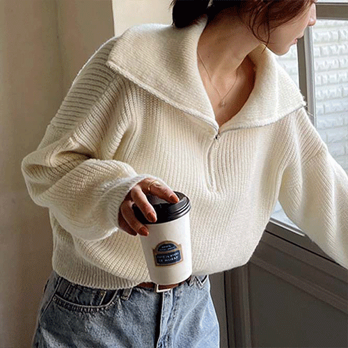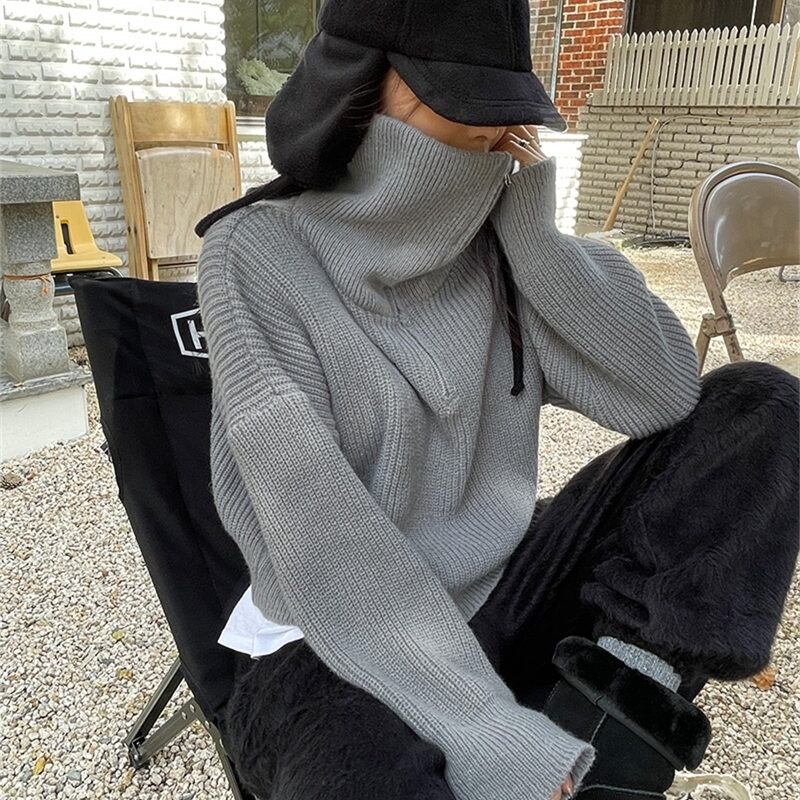 **韓国風レディース 無地 長袖ニット ポロトップス**