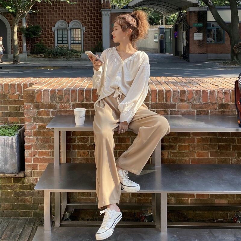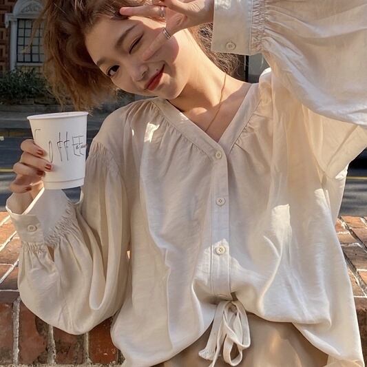 韓国風レディース きれいめ 長袖Tシャツ