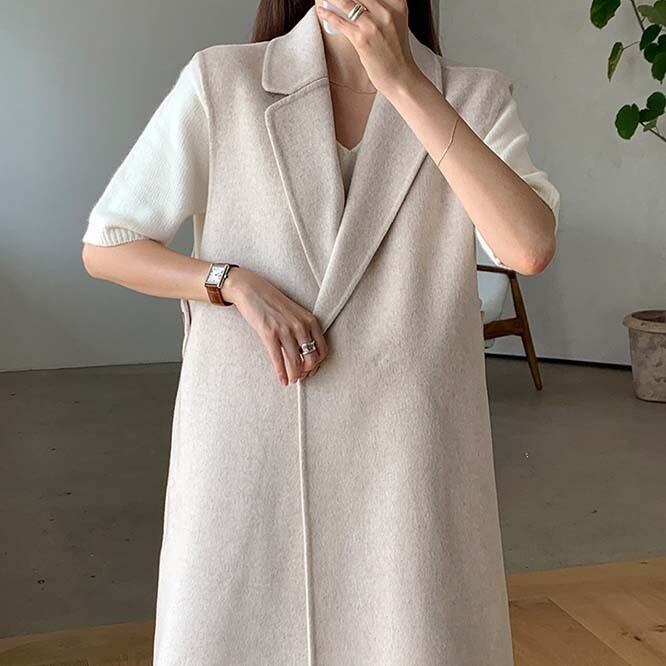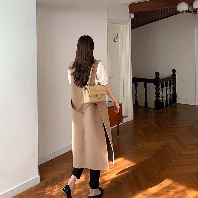 **韓国風レディース ロングベスト アウター**