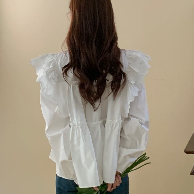 **韓国風レディース カジュアル 長袖ブラウス**