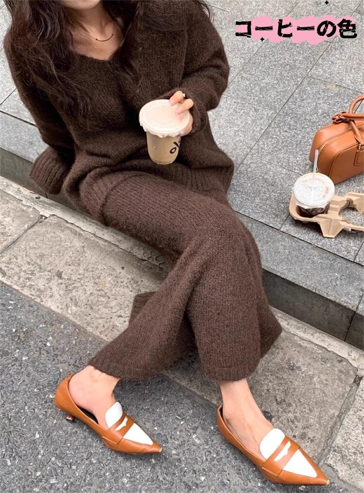 Vネック ロングスカート ニットトップス