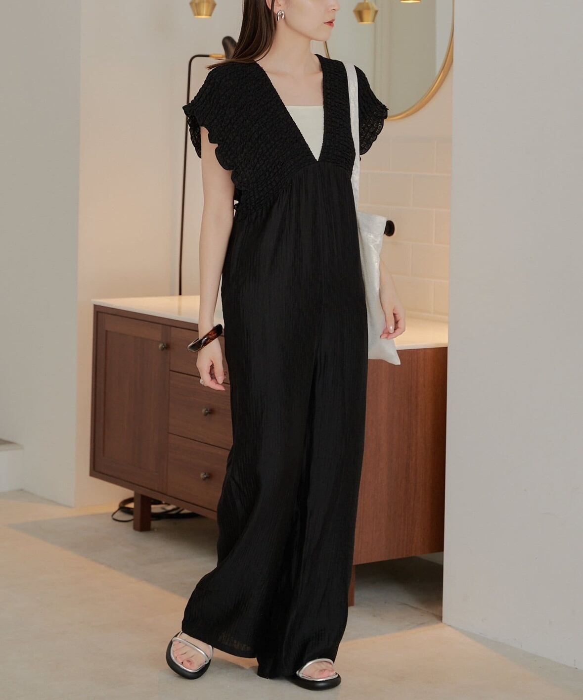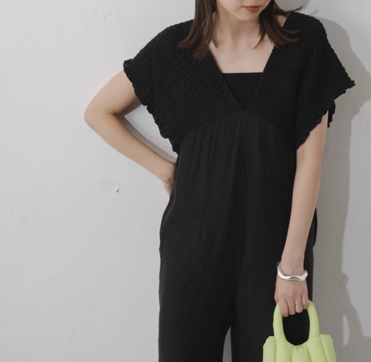 Vネックサロペット