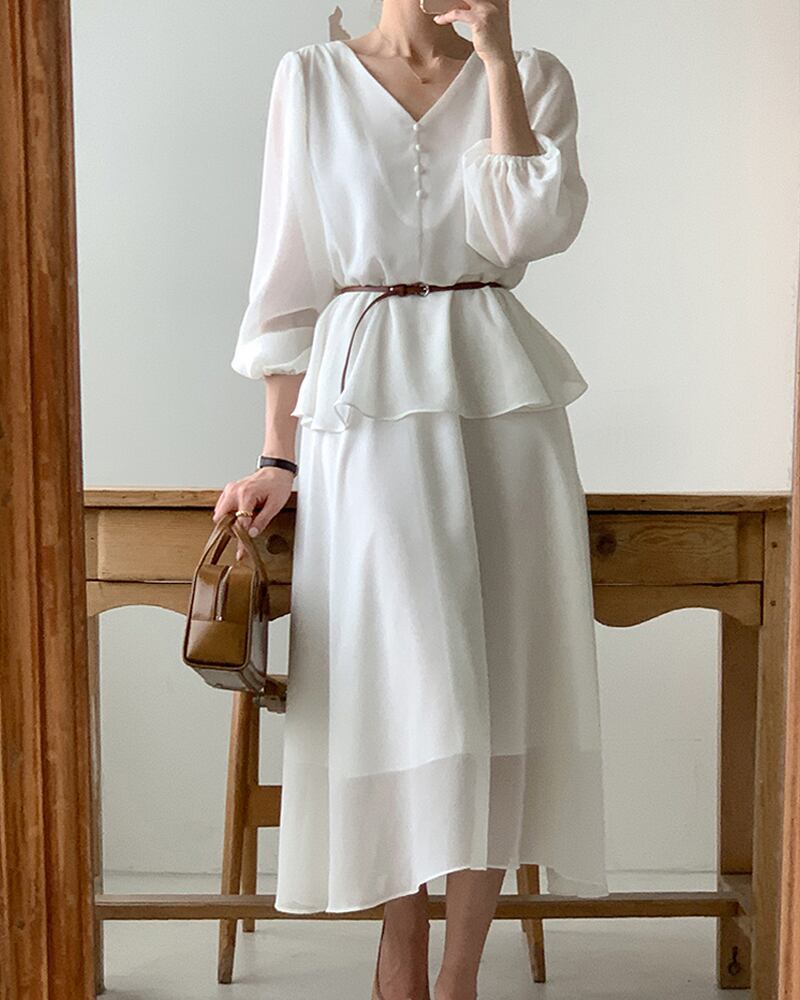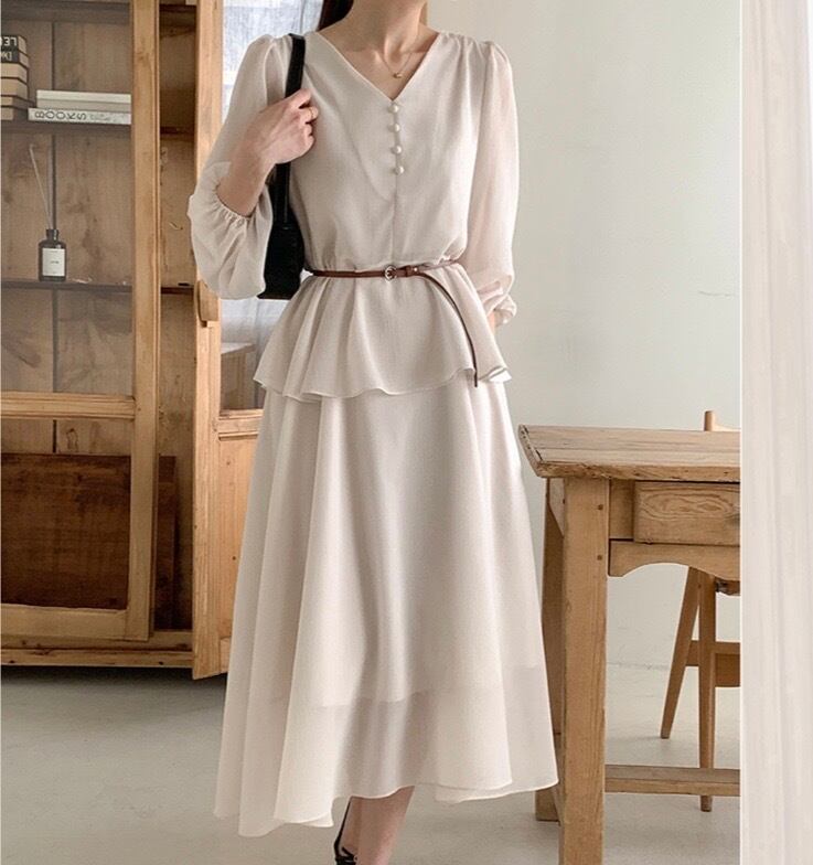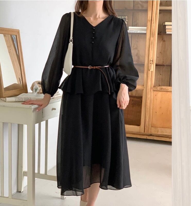 **2025秋冬新作 フレンチ Vネックベルト付き ワンピース**